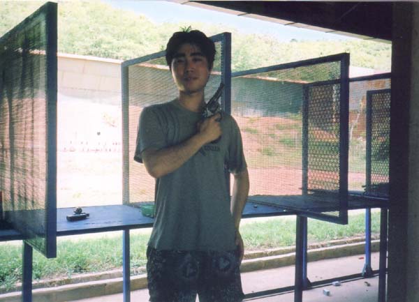 小島に到着♪ まず初めに、「ガンシューティングしないか??」と言われやってみる事に… 各種鉄砲を撃ってきました。今思えばライフルってなかなか撃てないんじゃないか?と思う。しかも、拳銃も下の写真のような状態だと、人に向けて撃つこと可能だし、かなり危険だよな… さすがはタイ人の大らかさってとこか??(笑)