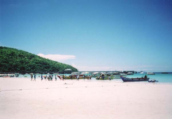 パタヤビーチは観光地だけあって人がいっぱいいた。とりあえずボートに乗って小島へ移動。その移動中の気持ちいいこと♪ 俺はやっぱ海が好きだなって思う。ボートに乗ってタップンタップン揺られていても気持ちよく感じるしね♪ そして小島への移動途中、パラセーリングをやってるところがあったからやってみた。さすがに高所恐怖症の俺は怖かった(笑) パラセーリングやってる途中勝手に写真を撮られて後で売りつけられたんだけど、その自分を見て笑えた。緊張のあまり固まってたし、笑顔も引きつってた(笑) 今となればなかなか面白い経験だったよ、パラセーリングやっててよかったと思う。笑い話が出来るから(笑)