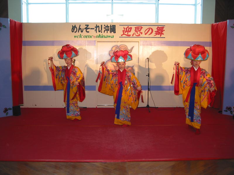 那覇空港に着いたら迎恩の舞という沖縄の民謡踊り(エイサーかな?)みたいなものがやっていて、