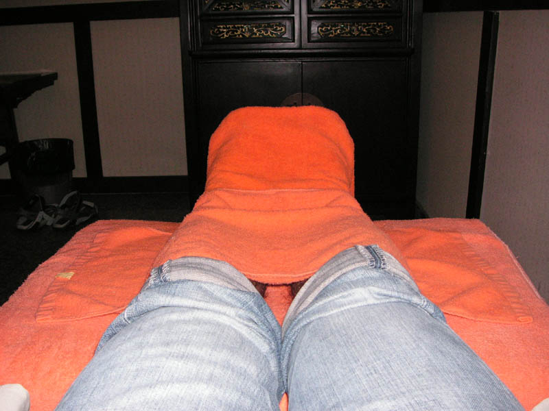 足つぼマッサージ店へ。やっぱり俺は体中悪いのかも・・・マッサージしてくれた子が日本語分かる子で、ツボ押しながら「ココ心臓」「ココ肝臓」「ココ頭」「ココ寝不足」などなど押される所ほとんどが痛かった(泣)その子がまた日本のアニメファンでガンダムが好きだって言うからかなり面白かった♪俺もガンダム大好き(笑)でも、友達をマッサージした子はみんな日本語ダメみたいで黙々とマッサージしてた。だから自分達だけが話してるのはちょっと恥ずかしいね(笑)最後に「(マッサージが)初めての人はたいてい痛いものだよ」と教えてもらいちょっと安心。でも、友達はあんまり痛い所はなかったって・・・ん〜なんでだろう??