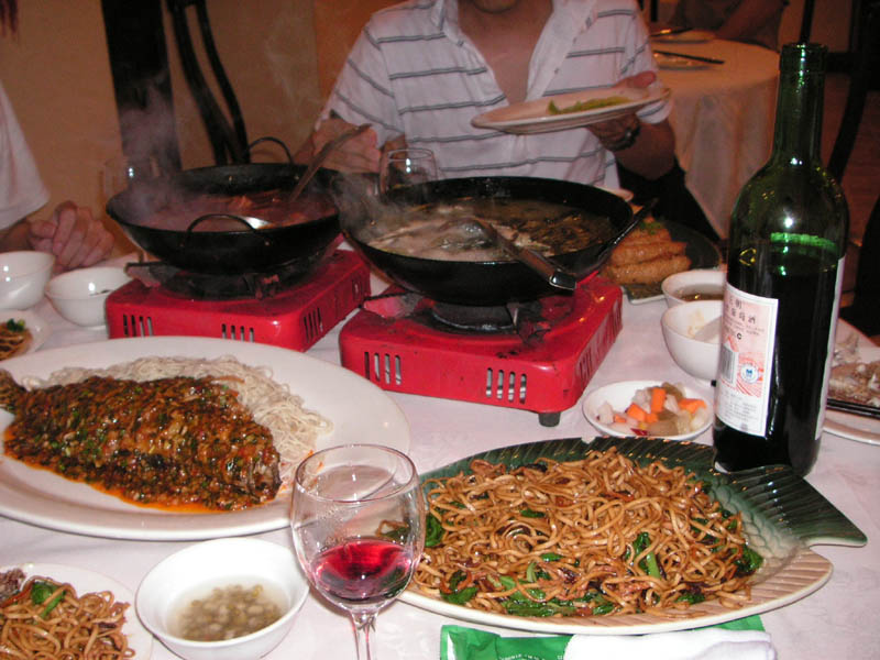 夜になって今度は『火鍋』を食べようって事で火鍋の有名なお店へ。火鍋とはめっちゃ辛いお鍋らしいけど、やっぱ上海の火鍋は辛さはそんなんでもないみたい。写真分かるように適当に頼みすぎて食べきれないほどの料理が出てきました(笑)写真を撮る前にも何品か食べ終えてるんだけどね(笑)そうそう、このお店で一つ学んだ事があります。それはトイレに行きたい時にのジェスチャー!!やっぱどのお店に入っても英語は通じません。で、「トイレ」、「トイレット」、「レストルーム」、「バスルーム」などなど言ってみたが全然通じない・・・このお店でも店員さんに話しかけてトイレはどこかって話しかけても通じなかったんだけど、店員さんが手を洗うようなジェスチャーをしてトイレを指さしたから、もしかしてこれがトイレを表してるんじゃないか??って思って友達がトイレ行く時に、手を洗うようなジェスチャーをして通じるか試してくれって言ったら通じました!!やっぱ言葉が通じなくてもボディーランゲージでコミュニケーション取れるんだなって思って嬉しかった♪