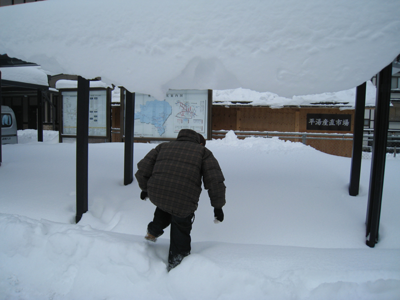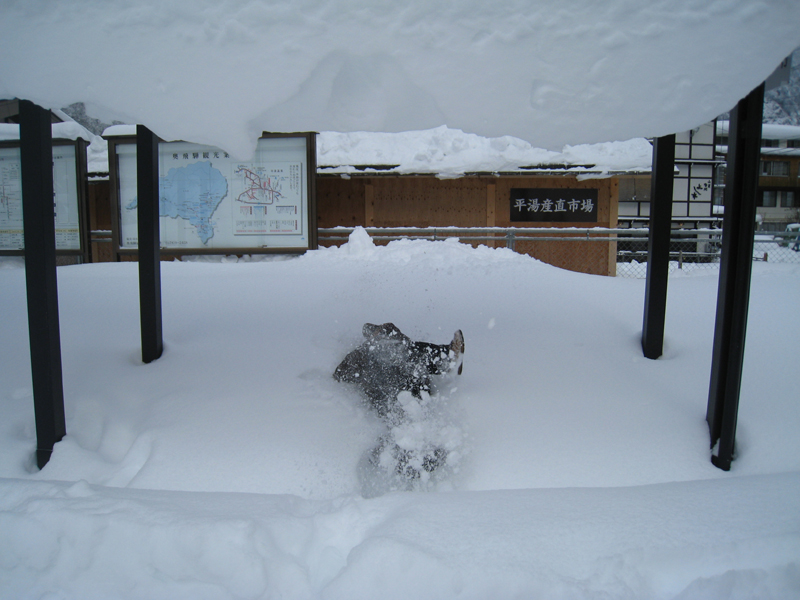 【平湯到着、雪がすごい!!】