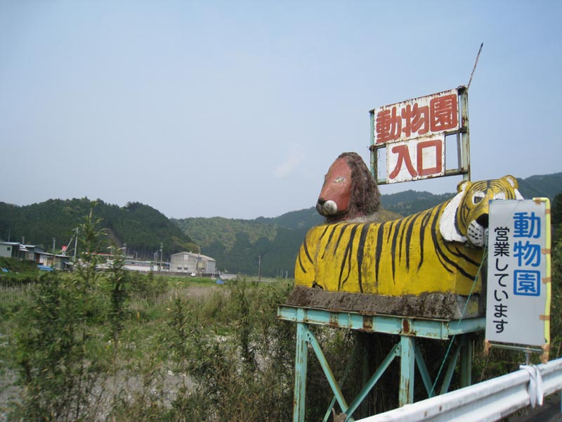 近づいてみると、いかにも手作りの動物のオブジェと「動物園入口」の看板が!