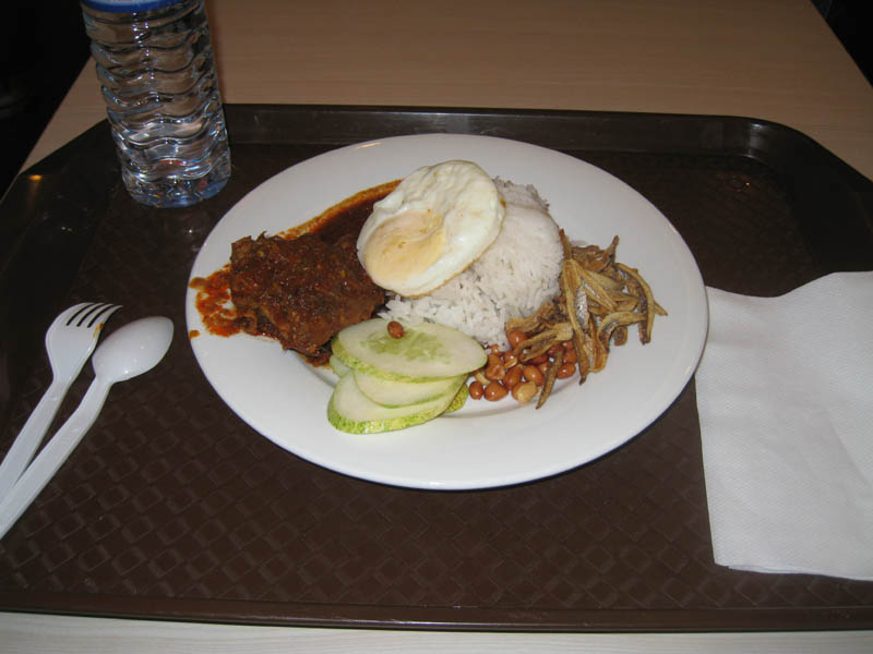 出発までに時間があったからLCCT内をぶらつく。暑いね!!歩いているだけで汗だく(汗)そんな暑いなかに食べるアイスは激ウマだね♪その日の晩ご飯にNasi Lemakを食す。日本に馴染みがある言い方をすればナシゴレンだね。インドネシアではナシゴレン、マレーシアではナシラマって言うみたい。お味の方は・・・スパイシーでちょっと辛いけど美味しい♪マレーシア料理イケるね(^O^)b
