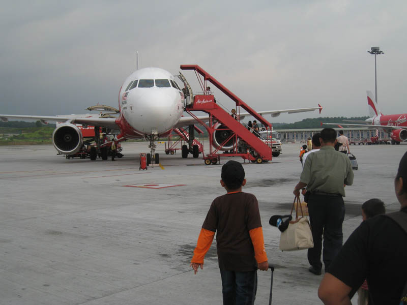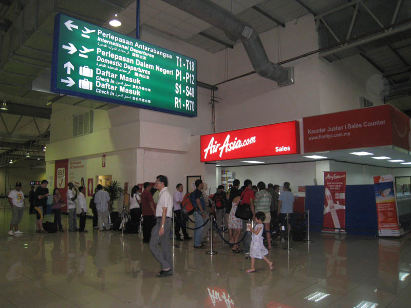 ランカウイ島に行くためにはLCCT(Low Cost Carrier Terminal:格安航空会社ターミナル)から飛行機に乗らないといけない。このLCCTはクアラルンプール国際空港と同じ敷地内にあるけどターミナルが違うのでバスに乗り移動が必要だったのでバス乗り場へ。バス乗り場に行き「LCCT行きのバスはどこ?」か聞くと『あのバスだ』と導かれたバスに乗り込む。しばらくしてバスは動き出したが・・・「あれ?空港の敷地内から出たよね」って気づき、頭の中をフル回転させているとバスはおもむろにハイウェイに乗り始める・・・「どこへ行くんだ!?このバス!?」俺の頭は大混乱!!バスの運ちゃんに「どこに行くのか?」尋ねると「○×△○×△〜」とよく分からない(汗)ならばと思い「LCCTに行きたかったんだけどどうしたらいい?」と尋ねると『タクシーに乗って空港まで戻るのが一番』と。その後、バスを降りてタクシーを拾い空港へ逆戻り。なぜ俺は訳分からん所に行くところだったんだろう??とか思いながらもLCCT到着♪航空券買わなきゃ!ってことでAir Asiaのカウンターに並ぶ。簡単に買えるんだね♪チケット買うために30分ぐらい待ったけどこれで今日中にランカウイ島へ行けるぞ!!