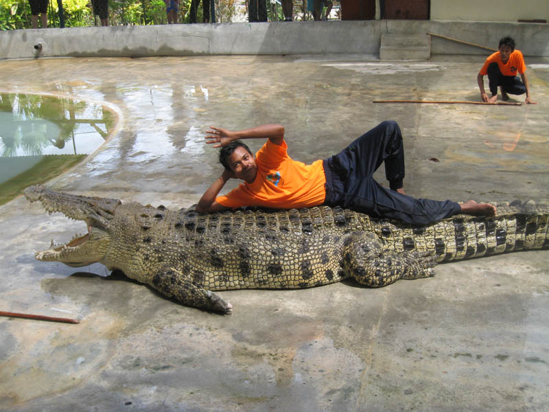 その後、道を引き返しクロコダイル・ファームへ。すごいね〜クロコダイルショー。見てる方がドキドキしちゃう!!旅行に行くちょっと前にテレビで見た衝撃映像で同じようなクロコダイルショーでクロコダイルに手を噛まれてる映像を見てしまったからなおさら・・・ただ、何事もなく終了し一安心♪こんなショーで事故でも起きようものならトラウマになっちゃう(笑)