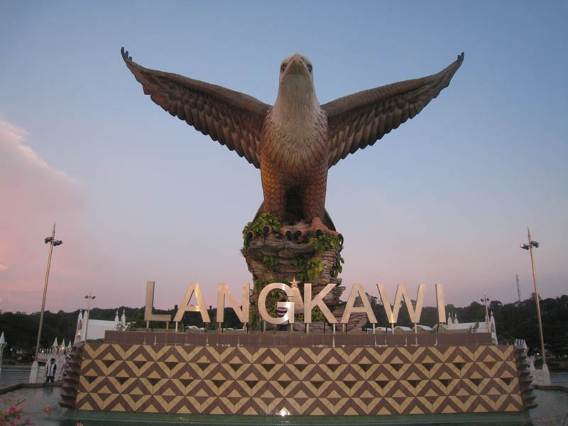その後、ランカウイ伝説公園に行き散策。いい感じに夕暮れどきになってきた♪巨大なワシの像周辺がビューポイントになってるね、沈みゆく夕日がすごい綺麗だった♪