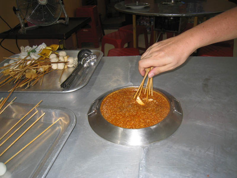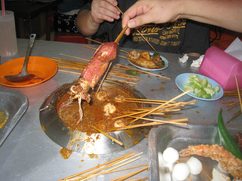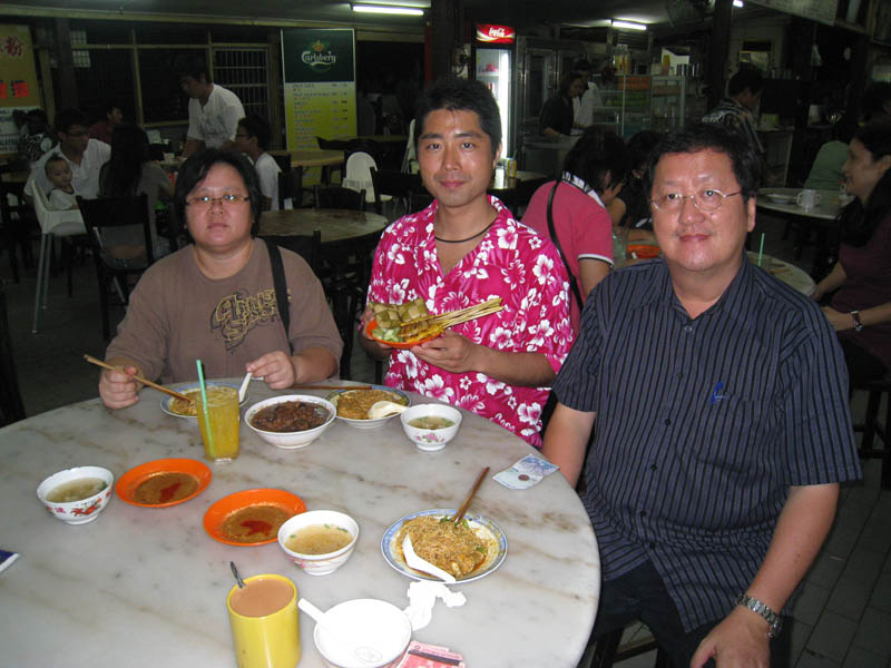 大学から帰り、夕食へ。これまたヨウさんオススメの辛いワンタンメンとチキンレッグとサテーを食べる。ワンタンメンは日本人が思ってるのとは違うね、カレー味のラーメンって感じだった。でも、美味しいからまぁいいや♪(笑)チキンレッグは、ニワトリの足だね。形を見るとちょっとグロテスクな感じがあるけど味はグッド!!サテーは日本の焼き鳥。肉はチキンとポークの2種類あって、少し甘い味付けでこれまたグッド!!