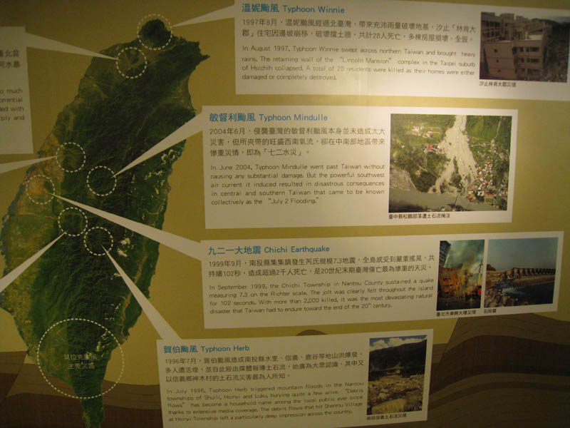二二八和平公園の中にある国立台湾博物館へ。この博物館には原住民のこと、海の生物のこと、台湾の歴史のこと、地震や天災のことが展示されていた。そういえば10年前の台湾大地震のことはよく覚えている。大学の研究室で「SDRAM(だったかな?)の価格が上がる」みたいなこと話してたな。(当時、SDRAMは台湾で多く生産されていた)当時の俺は全然他人事だったけど、でも、こうして台湾に来て改めて意識してしまうと、改めて台湾大地震の被害はひどかったんだなって感じた。
